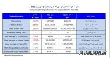 كما بلغ إجمالي عدد الصفقات المنفذة في أغسطس الماضي 2.30 مليون صفقة مقابل 3.37 مليون صفقة في شهر يوليو الذي سبقه بإنخفاض بنسبة 31.87%.